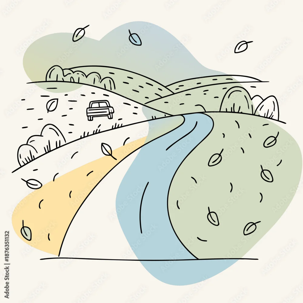 Obraz Autumn Leaf-Covered Road with Pickup Truck - ryby - Picturewall.pl