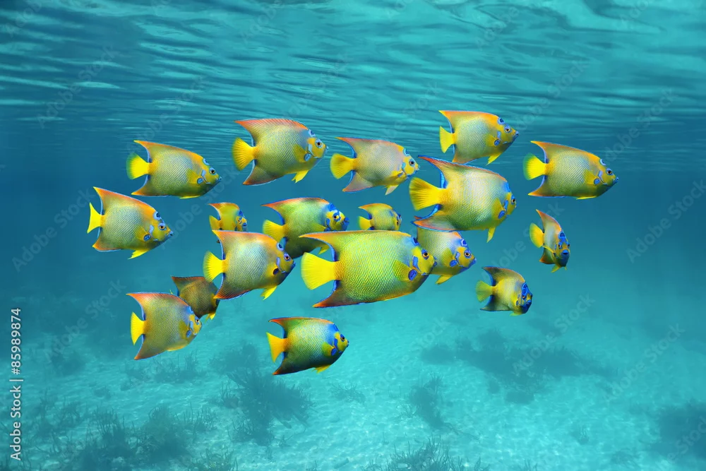 Obraz Schooling colorful tropical fish queen angelfish - ryby - Picturewall.pl