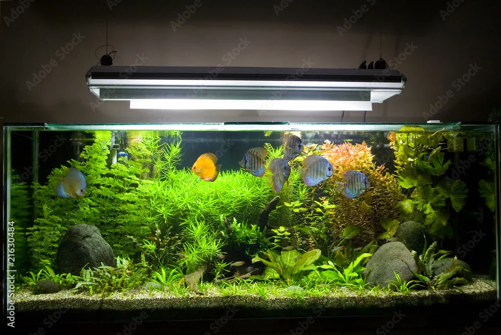 Obraz Tropical Freshwater Aquarium with Discus Fish 1 - ryby - Picturewall.pl
