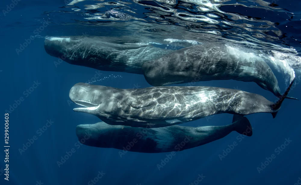 Obraz Strąek kaszalotów pod wodą w Oceanie Atlantyckim Azorów - ryby - Picturewall.pl