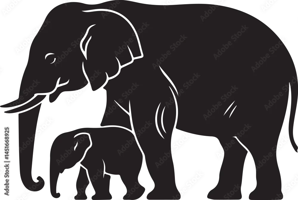 Obraz Black Elephant Silhouettes Clipart – Walking, Trunk Raised, Elephant Family Vector Set