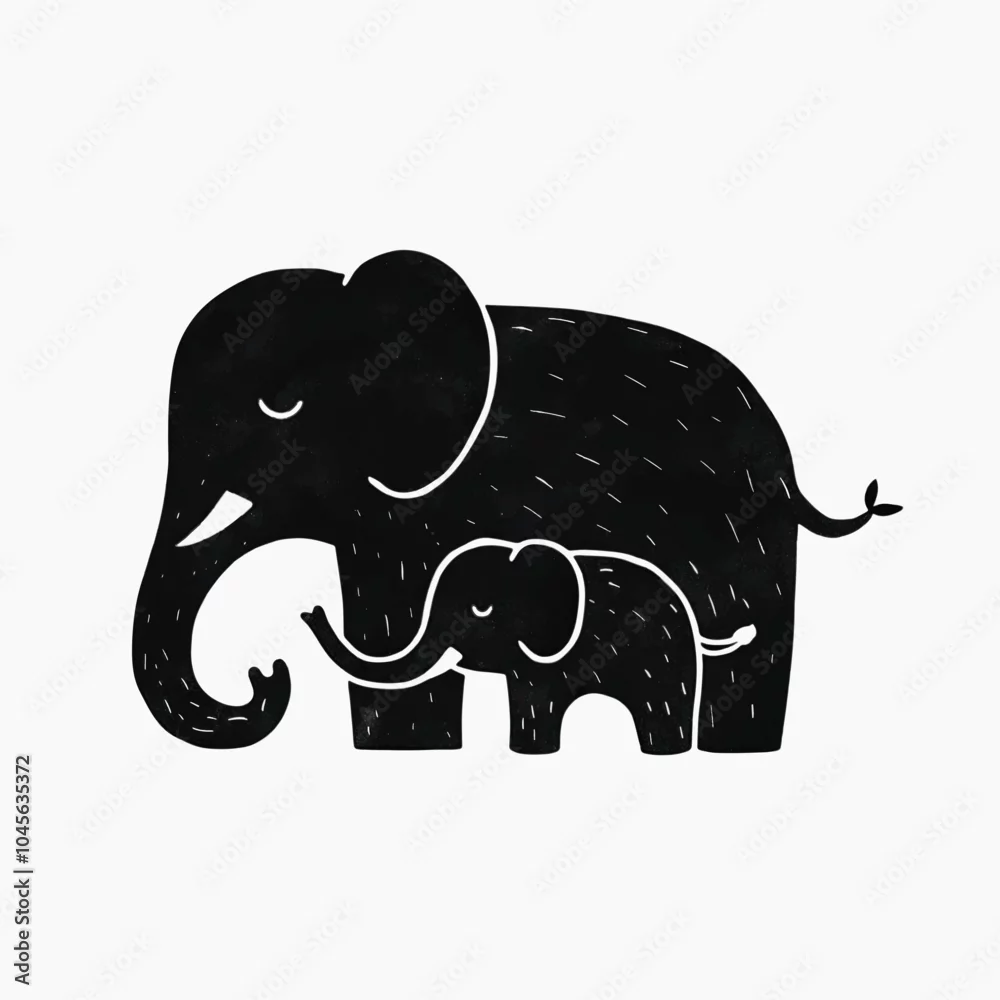 Obraz Elephant illustration, mother and baby - słonie - Picturewall.pl