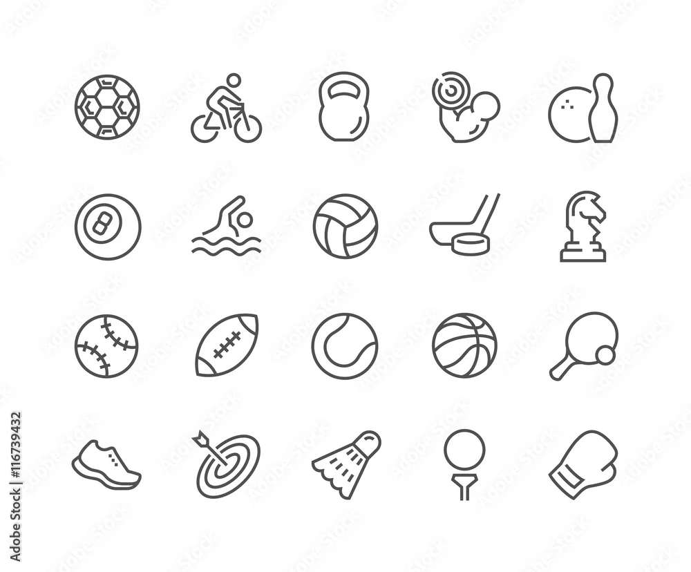 Obraz Ikony sprzętu sportowego linii - sportowe - Picturewall.pl