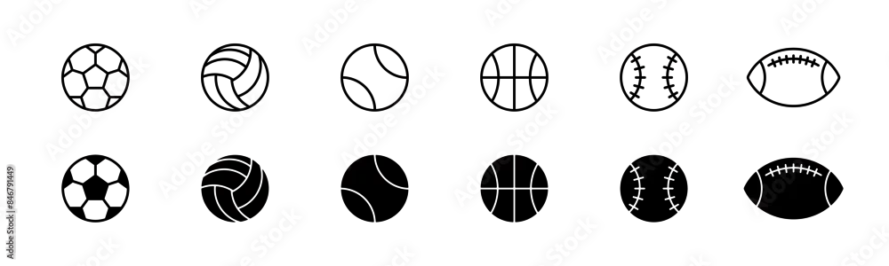 Obraz Sport ball icon set. Line and glyph sport ball set. Football ball