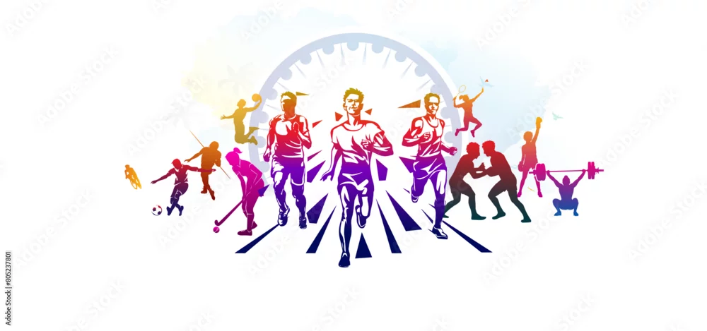 Obraz Sports athletics players runners background for world sports day for athletics day. Eps vector illustration. - sportowe - Picturewall.pl