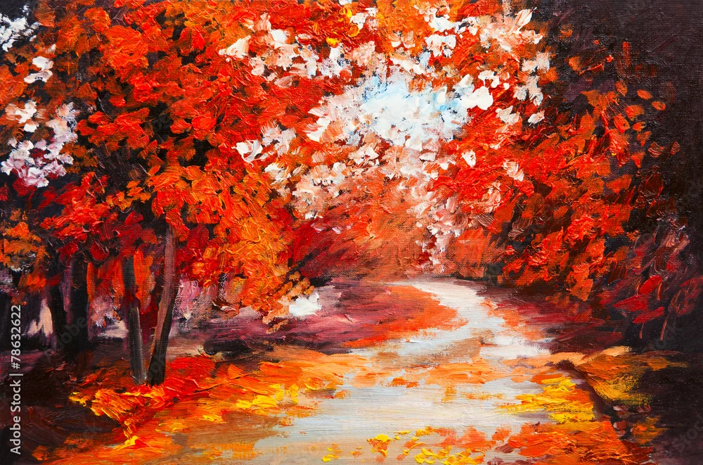 Obraz Obraz olejny pejzaż - kolorowy jesień las