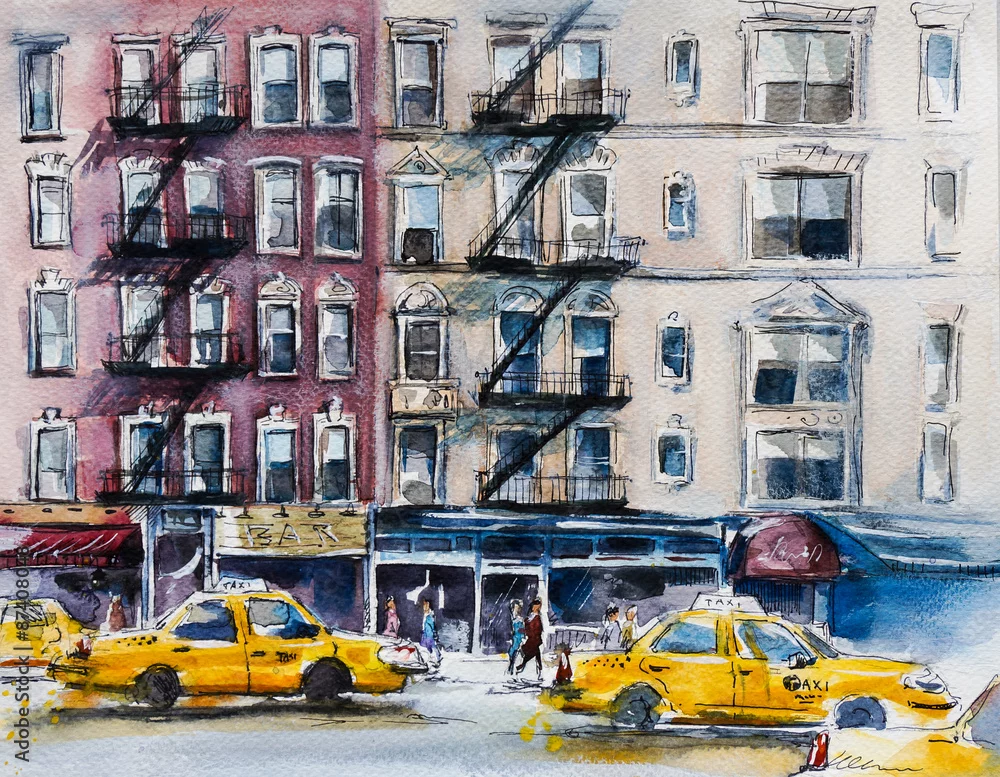 Obraz taksówki w Nowym Jorku namalowane akwarelą