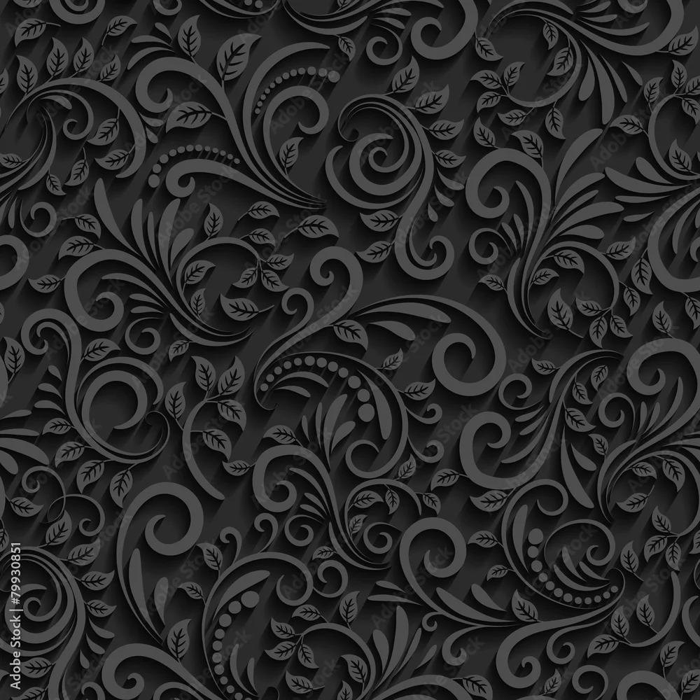 Obraz Wektorowy czarny kwiecisty bezszwowy wzór z cieniem dla zaproszenia