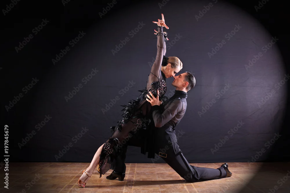 Obraz tancerze w sali balowej na białym tle na czarnym tle