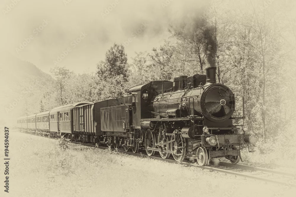Obraz Stara lokomotywa parowa w stylu vintage