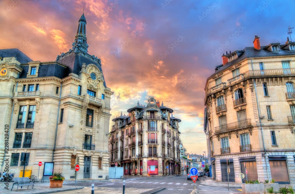 Obraz Urząd pocztowy w Dijon o zachodzie słońca. Francja