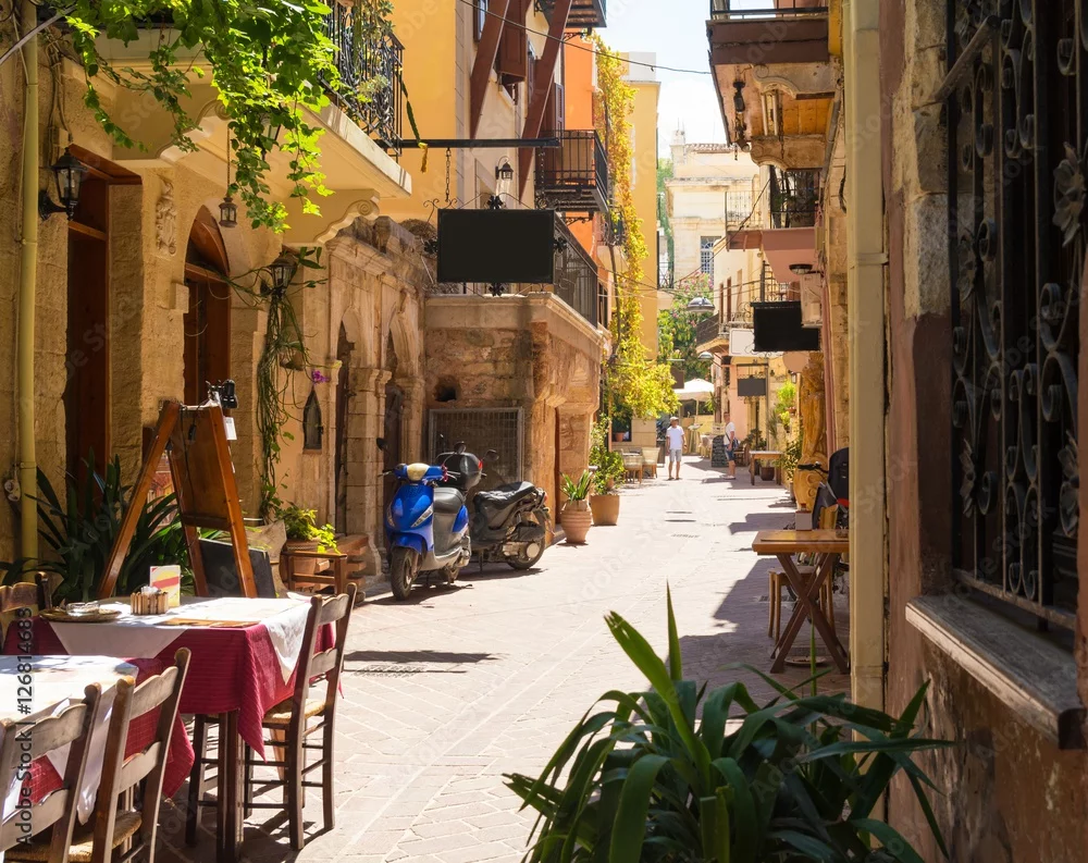 Obraz wąska ulica w mieście Chania na wyspie Krecie, Grecja