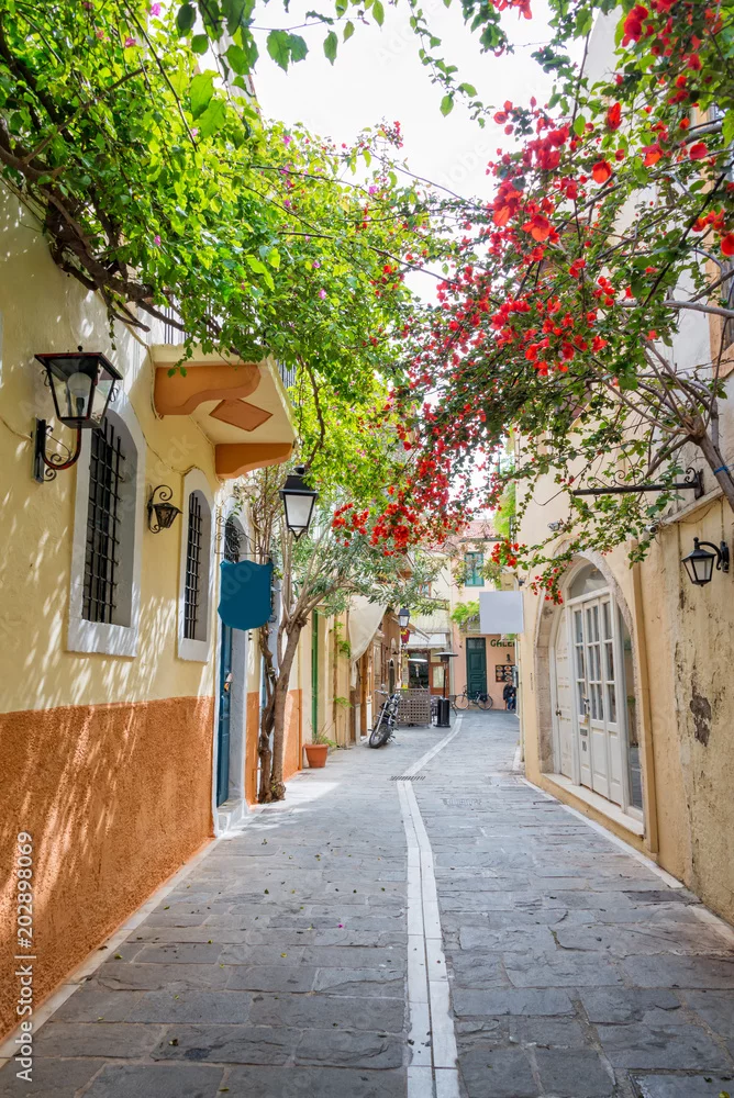 Obraz Zwyczajna ulica w starym miasteczku Rethymno w Crete, Grecja