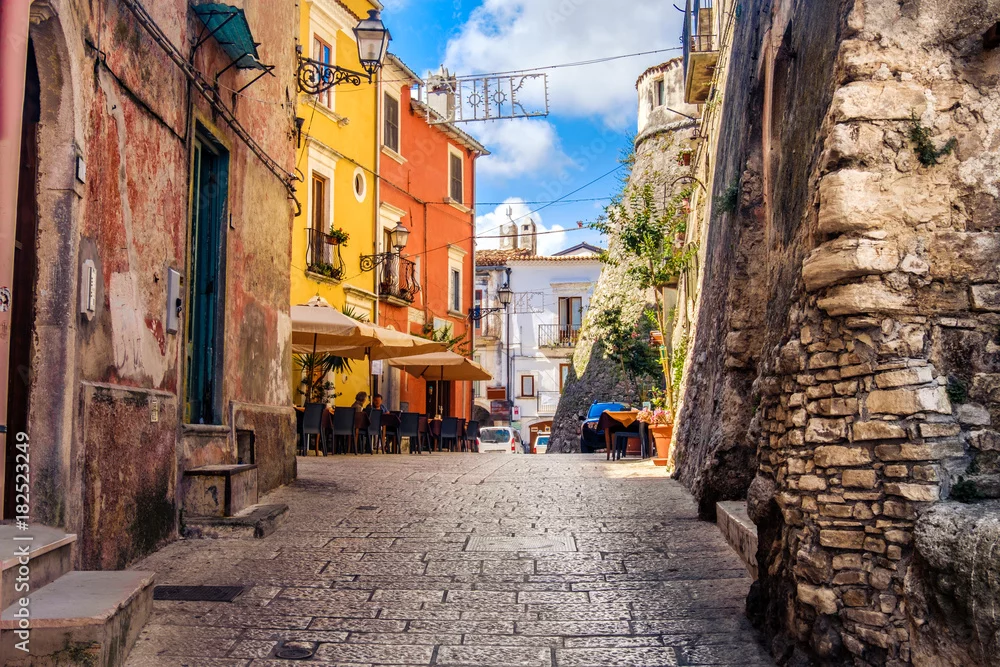 Obraz kolorowa aleja wioski na południu Włoch w Apulii w miejscowości Vico del Gargano