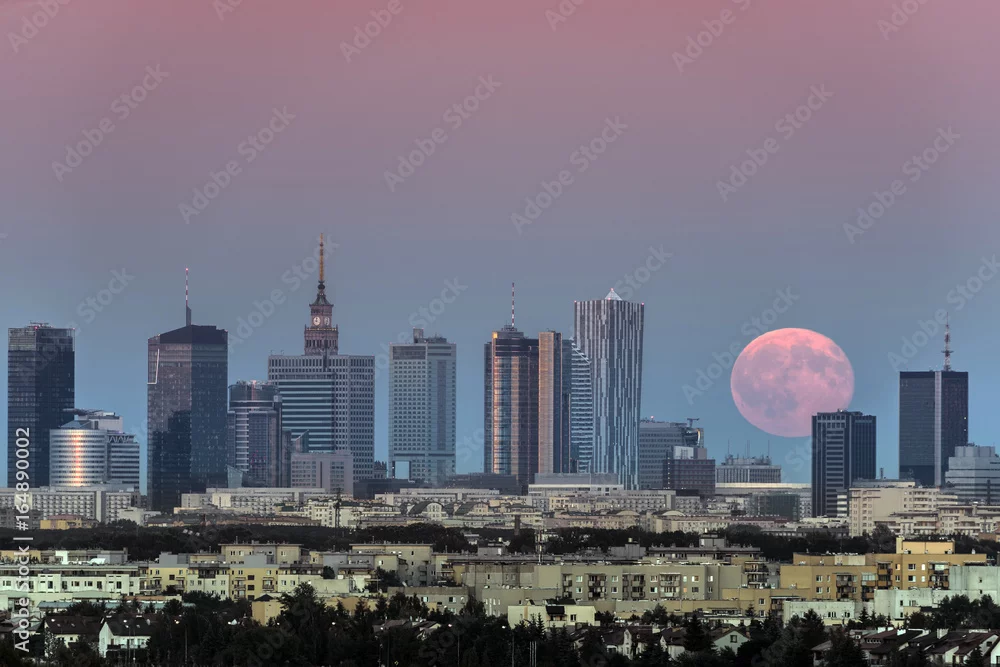 Obraz Wschodzący księżyc nad Warszawą, Polska
