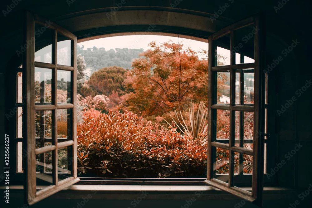 Obraz Jesień przez otwarte okno vintage