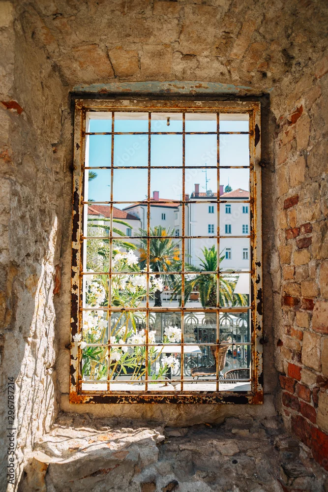 Obraz Riva uliczny widok przez fortecznego okno w rozłamu, Chorwacja