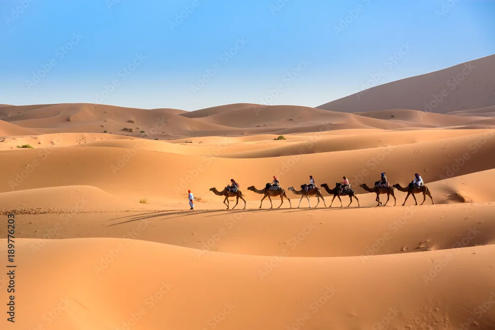 Obraz Karawana na pustynii Sahara, Wydmy Erg Chebbi.