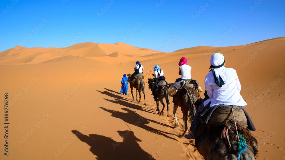 Obraz Karawana na pustynii Sahara, Wydmy Erg Chebbi.
