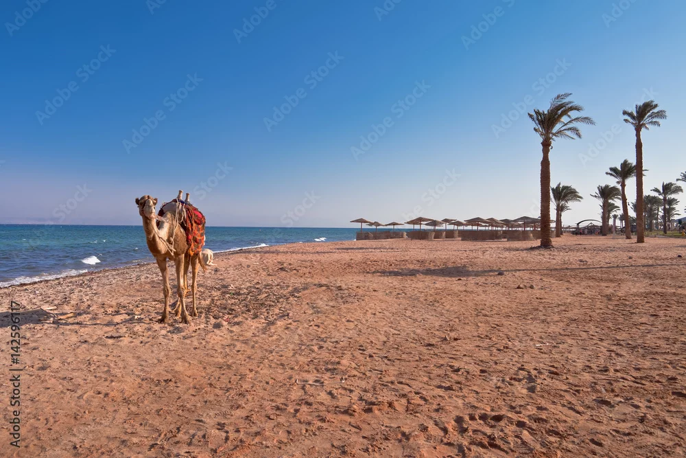 Obraz Wakacje w Egipcie. Wielbłąd na plaży