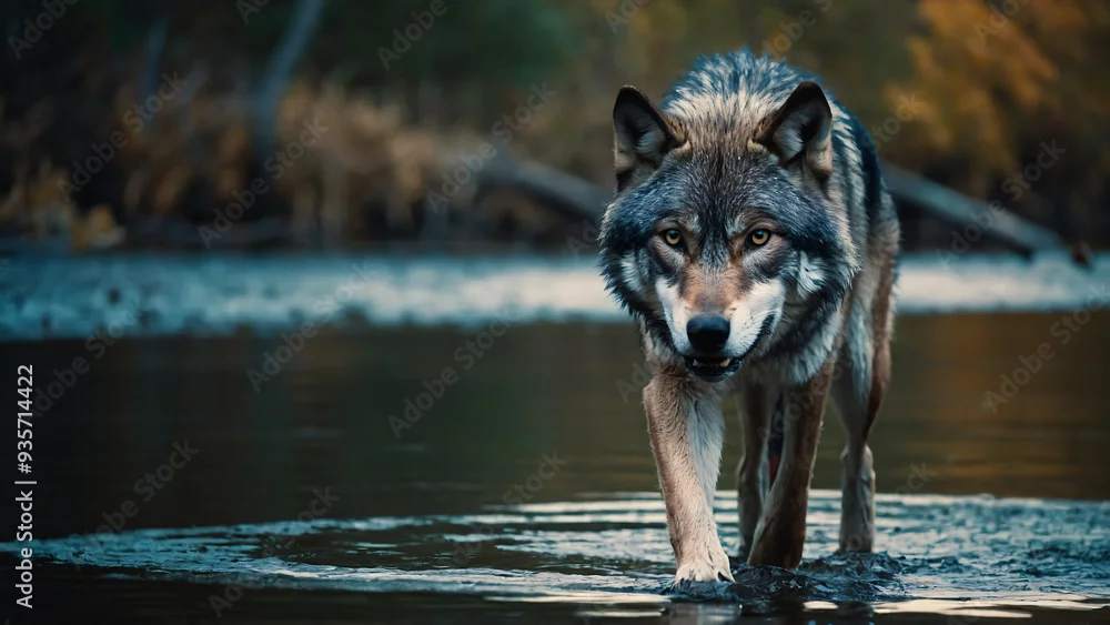 Obraz Wilk w naturalnym środowisku. Generative AI.