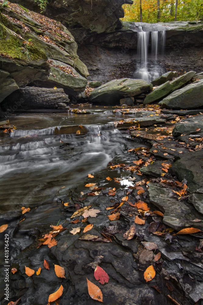 Obraz Piękna jesieni scena przy Błękitną kurą Spada w Cuyahoga Dolinnym parku narodowym blisko Cleveland Ohio.