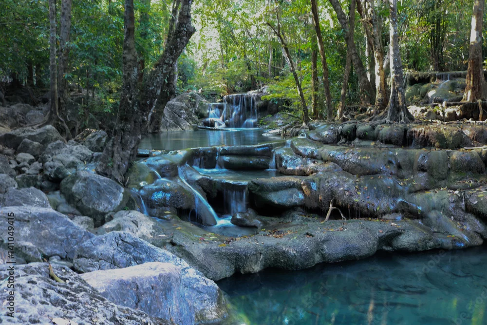 Obraz Siklawa w lesie przy Erawan siklawy parkiem narodowym, Kanchanaburi, Tajlandia