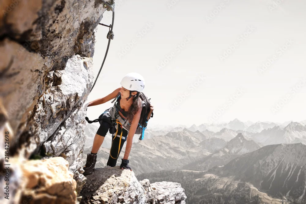 Obraz Dopasuj sportowy młoda kobieta wspinaczka górska