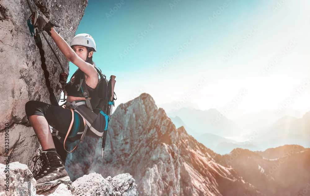Obraz Młoda kobieta, wspinaczka w Alpach