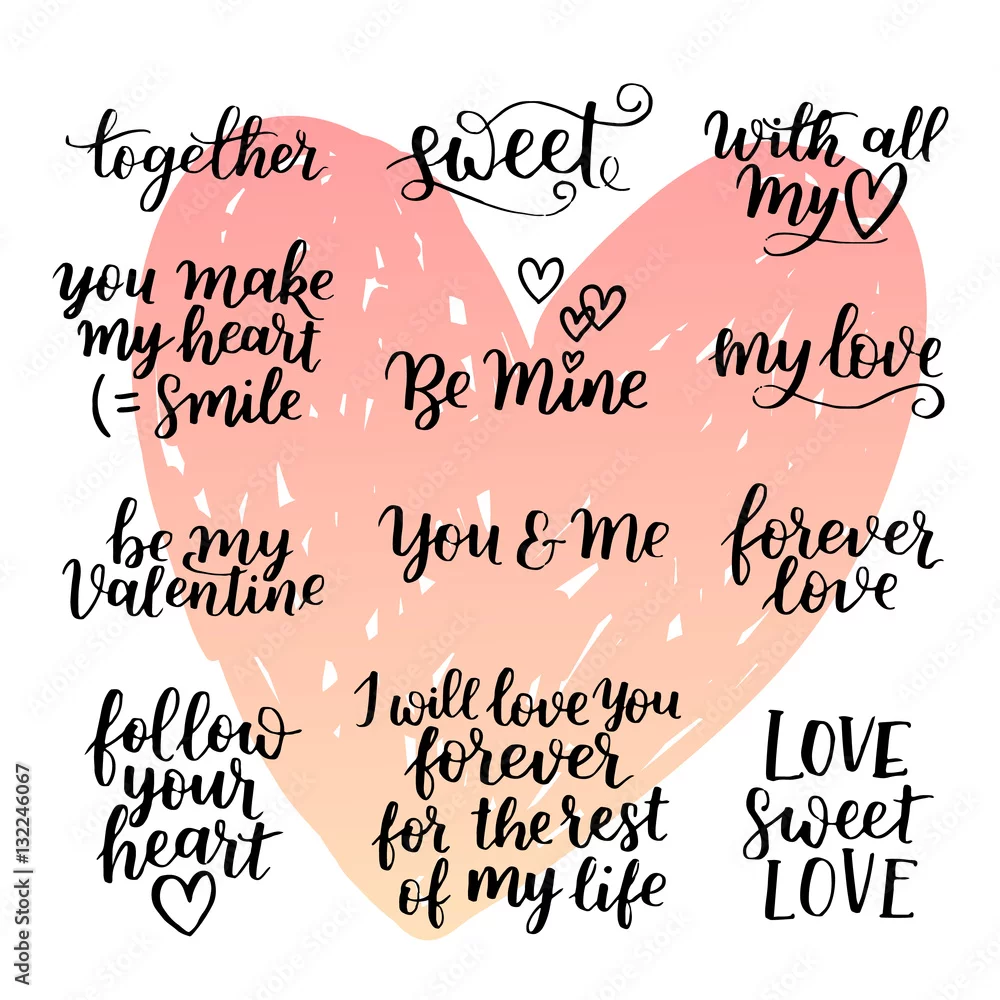 Obraz Wektor zestaw odręcznie napis pozytywny cytat o miłości na Walentynki, typografia ślubna, album fotograficzny lub romantyczny projekt, pędzel ilustracja nowoczesnej kaligrafii
