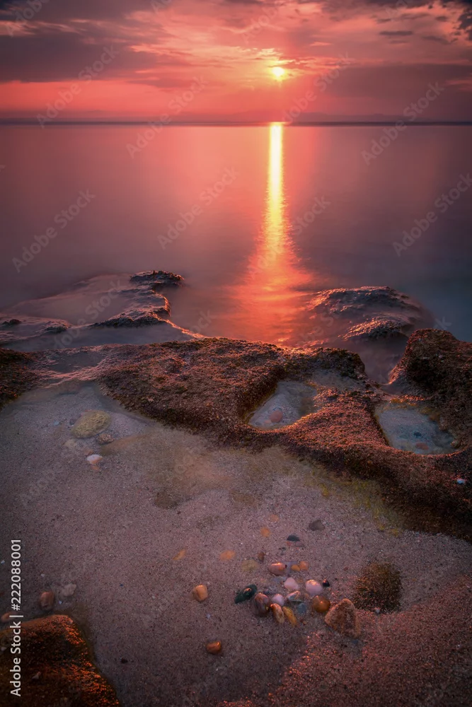 Obraz Piękny kolorowy długi ujawnienie wschodu słońca seascape strzelał w Afytos, Chalkidiki, Grecja