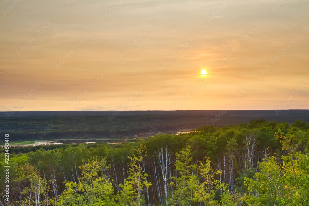 Obraz Słońce zachodzące nad lasem Parku Narodowego Prince Albert.