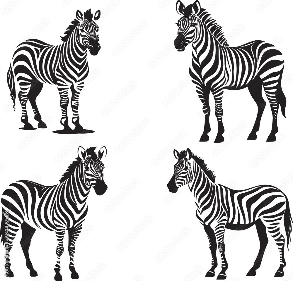 Obraz Graphic set of zebra isolated on white background, - zebry - Picturewall.pl