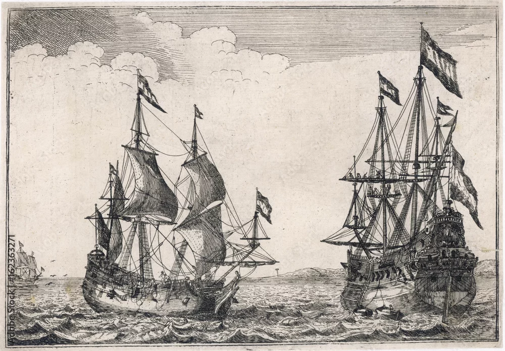 Obraz Holenderskie okręty wojenne 1630 roku. Data: około 1632 r - żeglarstwo - Picturewall.pl