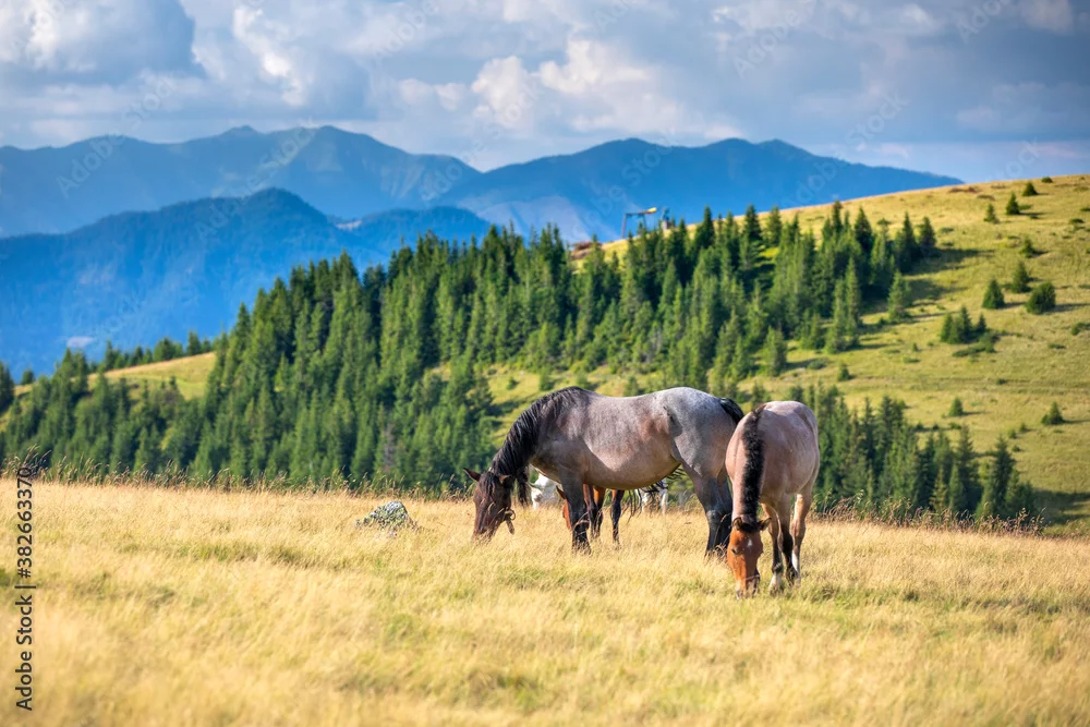 Obraz Konie w Górach - Rumunia - zwierzęta - Picturewall.pl