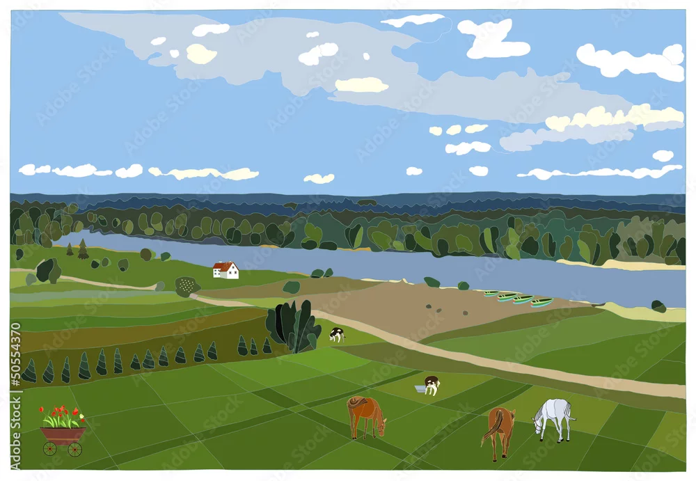 Obraz Pejzaż wiejski - zwierzęta - Picturewall.pl