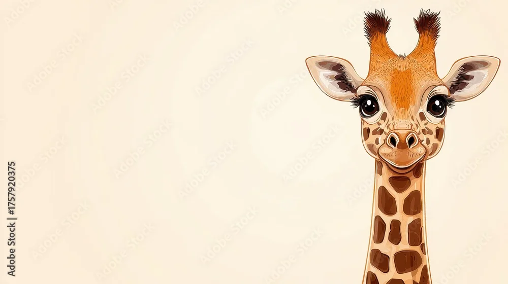 Obraz Close Up Illustration of a Cute Giraffe's Head and Neck Against a Beige Background