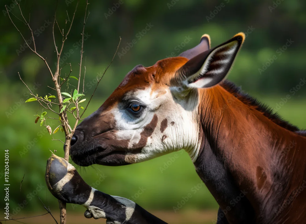 Obraz 絶滅危惧種の肖像:イチュリの森に生息するオカピのクローズアップ