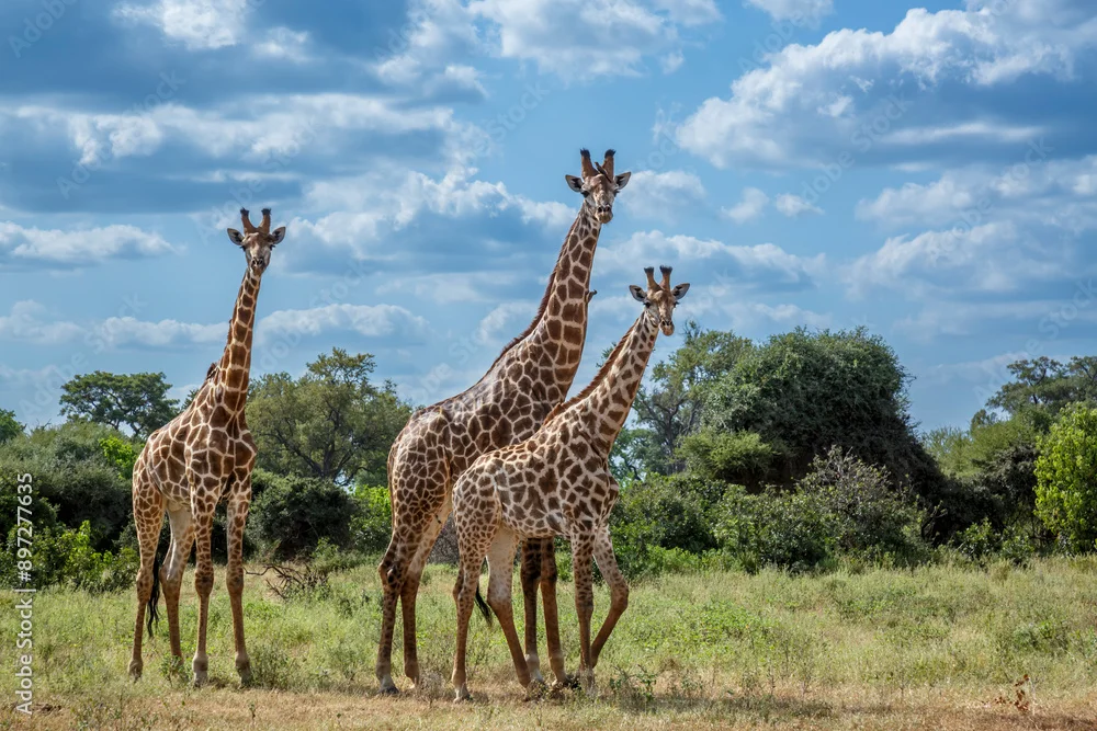 Obraz Three Giraffes in green bush in Kruger National park, South Africa ; Specie Giraffa camelopardalis family of Giraffidae
