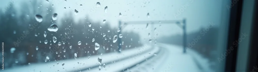 Obraz View of a train track through a window with raindrops - żyrafy - Picturewall.pl
