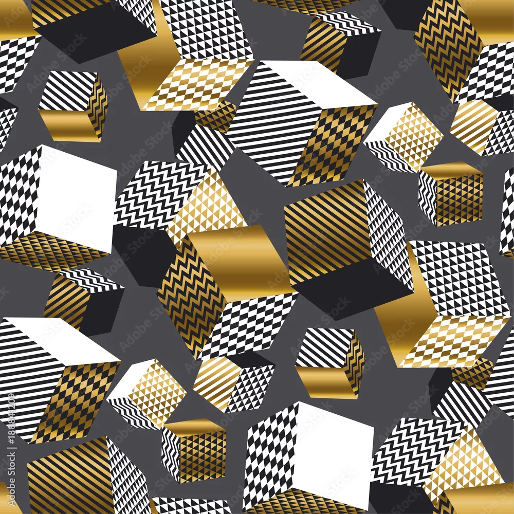 Tapety Odważne i czarne 3d geometryczny wzór modułów. Geometria iluzji objętości kształtuje powtarzalny motyw. Element graficzny do projektowania powierzchni, tkanin, papieru do pakowania. - 3d - Picturewall.pl