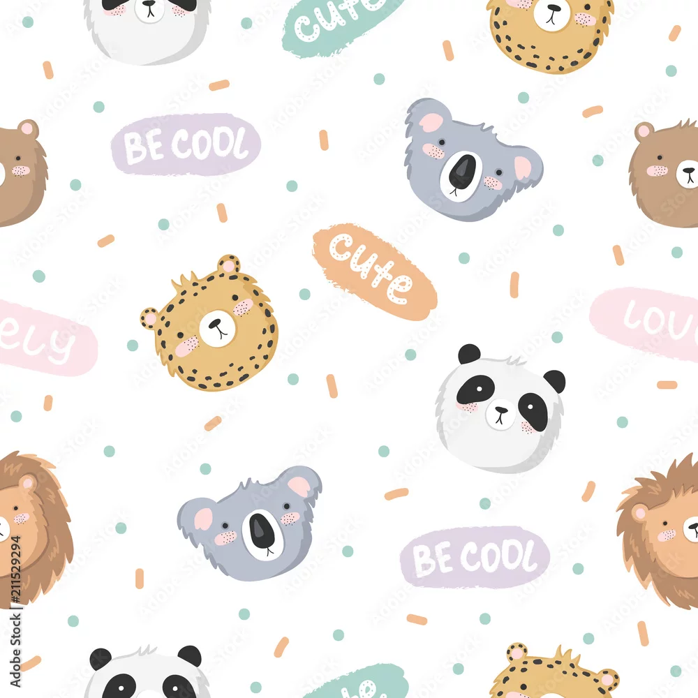 Tapety dziecięcy wzór ze zwierzętami i tekstami