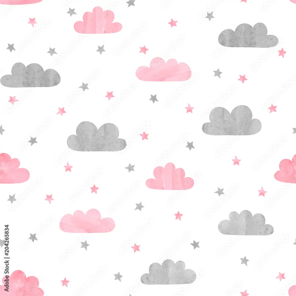 Tapety różowe i szare chmury oraz gwiazdy akwarelą