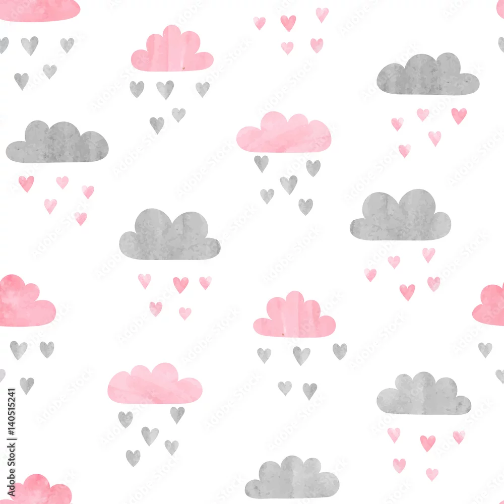 Tapety Wzór akwarela bezszwowe chmury. Deszcz serc. Ilustracji wektorowych. - dla dzieci - Picturewall.pl