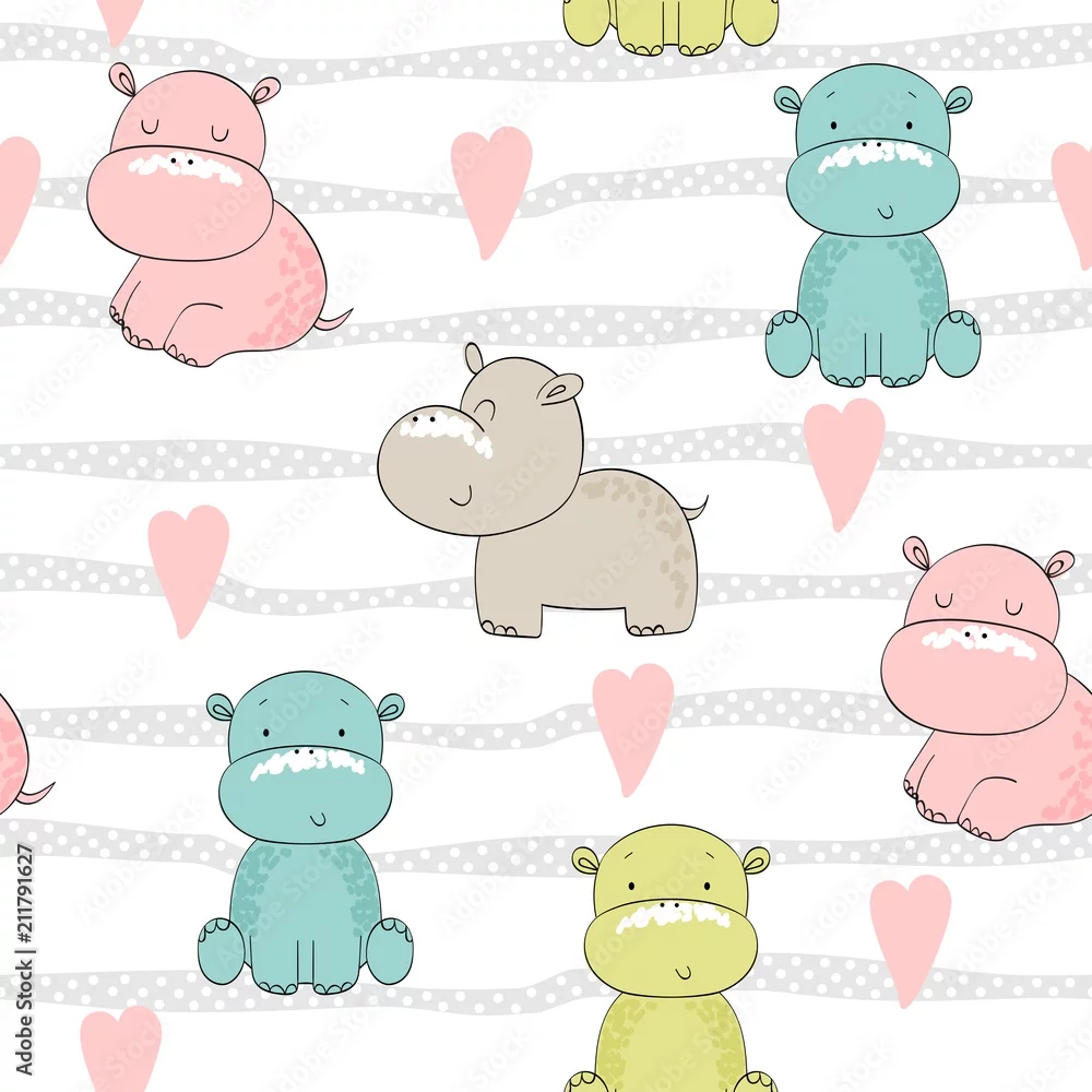 Tapety wzór z ślicznymi kolorowymi hipopotamami