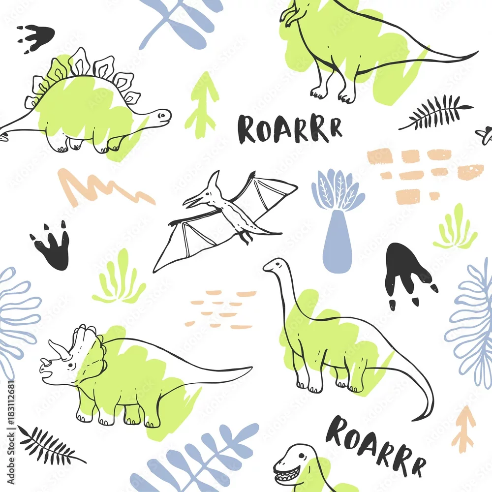 Tapety Wzór z uroczych dinozaurów dla dzieci tekstylne, tapety, plakaty i inne wzory