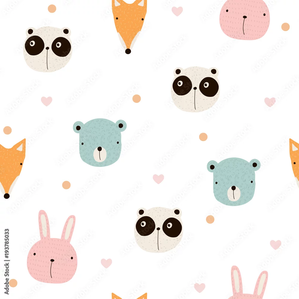 Tapety Wzór z uroczych zwierzątek. Wektorowa ręka rysująca ilustracja. - dla dzieci - Picturewall.pl