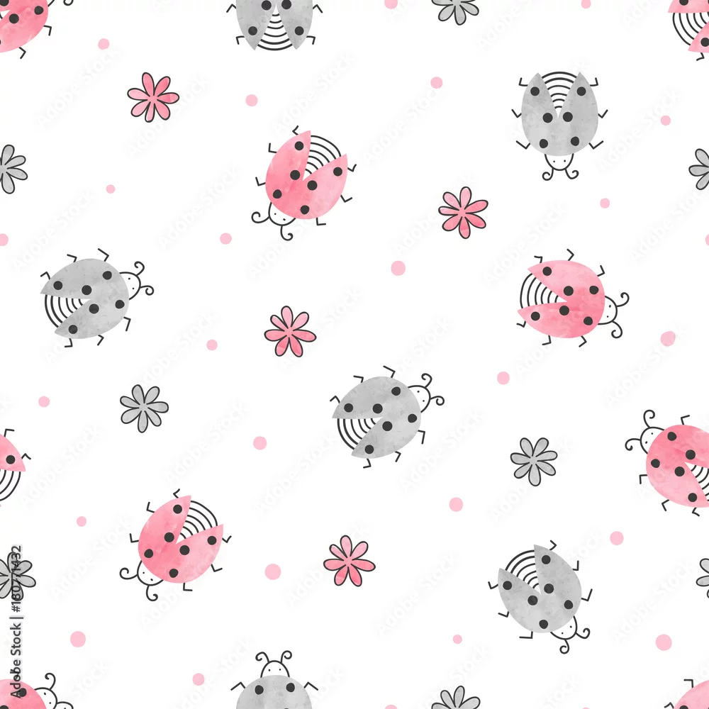 Tapety Bezszwowe biedronki i kwiaty wzór. Tło dla dzieci.