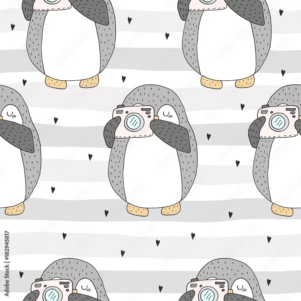 Tapety Wzór z cute pingwiny. Ręcznie rysowane ilustracji. Wektor.