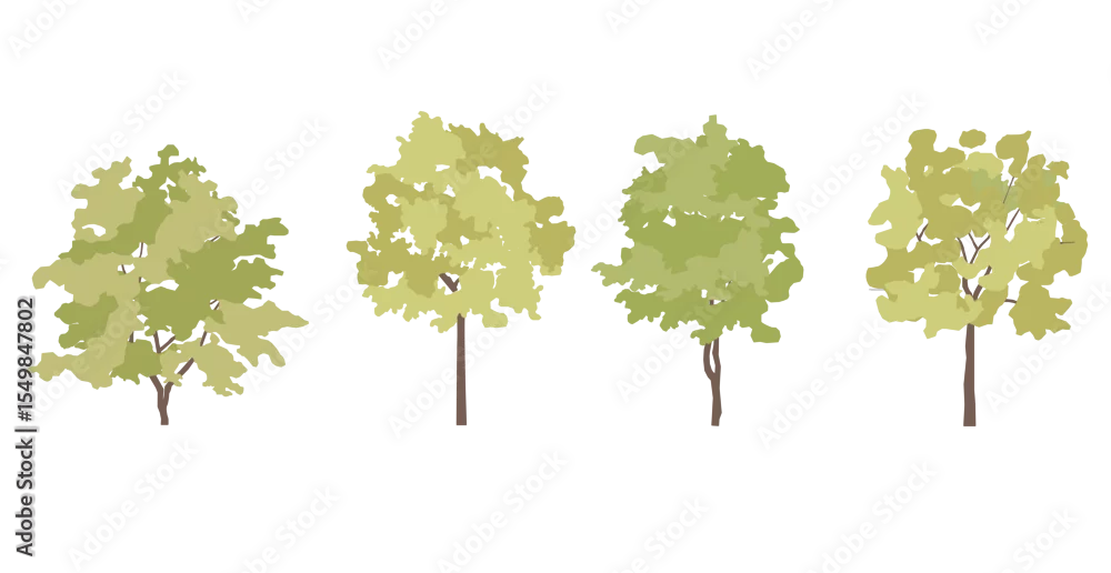 Tapety Spring trees in elevation and plan view for use in architectural drawings - do architekta - Picturewall.pl